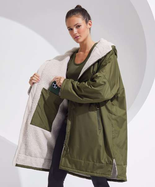 TriDri’s latest outerwear is essential in everyone’s wardrobe! The TriDri® All-seasons waterproof changing robe boasts a waterproof exterior with hood to keep you dry, as well as adjustable straps to the wrists and chin guard to help lock in heat on windy days. The cosy sherpa fleece interior absorbs moisture and keeps you warm, making it a great choice after water activities or rainy days on the football pitch. Designed to be oversized, the jacket is ideal for changing into warm, dry clothes, offering a double zip – so more room to move! Featuring multiple deep pockets, inside and out, it’s not just for athletes, but perfect for rainy commutes or frosty walks with the dog.